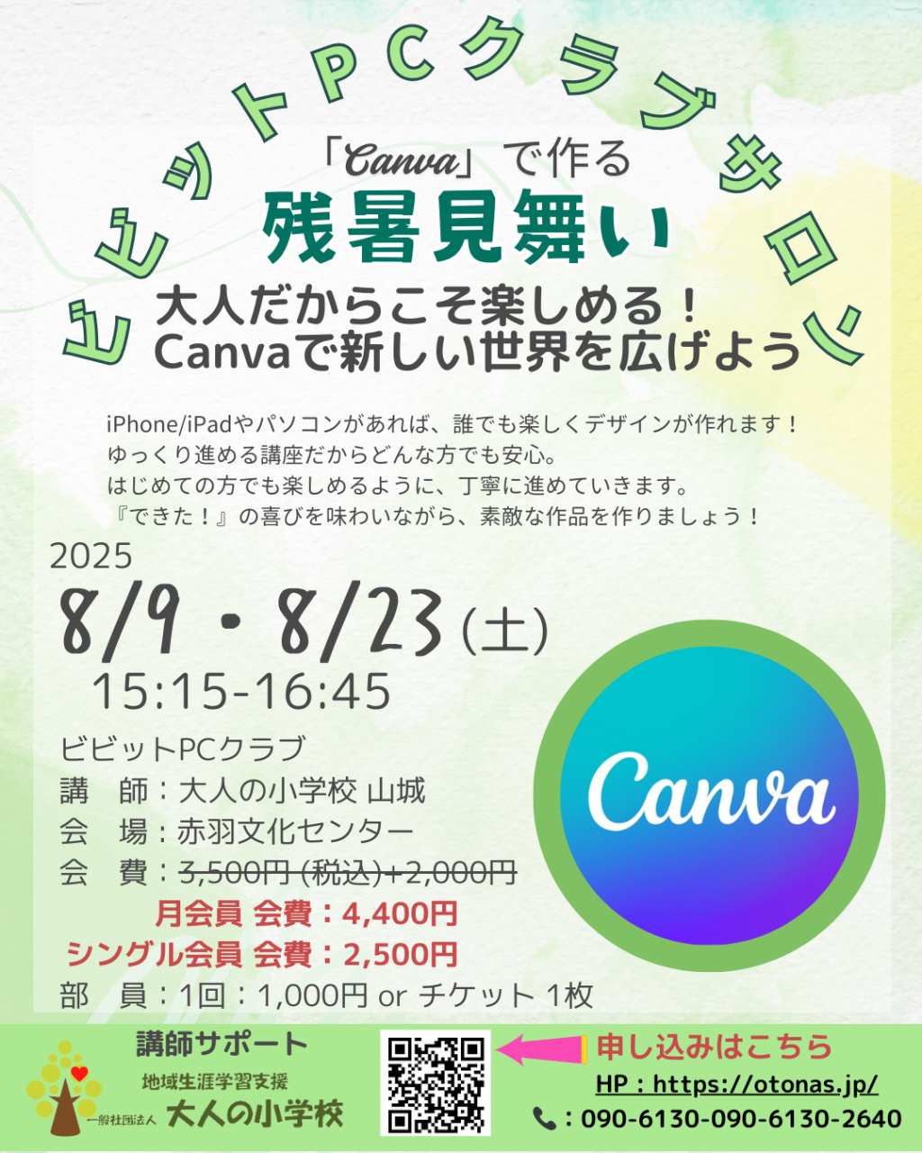 8月23日 | Word:基礎 長文作成 ② | Canva で 残暑見舞い 作り ② |